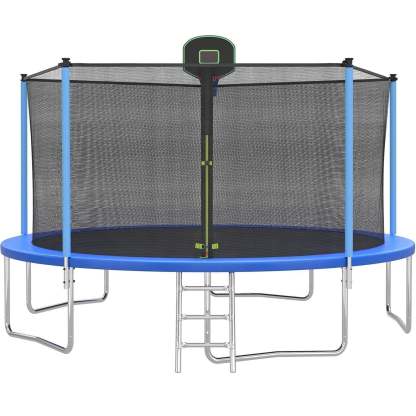 14FT Trampoline for Kids and Adults, SEGMART Upgraded Outdoor Trampoline with Basketball Hoop, Heavy-Duty Round Trampoline with Safety Enclosure Net and Ladder for Indoor Outdoor Backyard, Blue