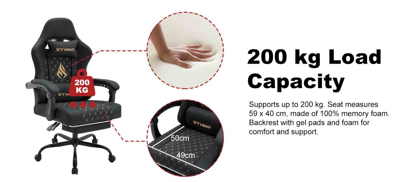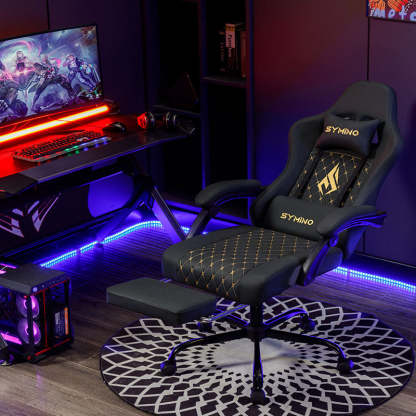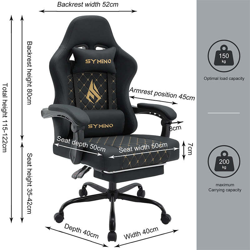 SYMINO Ergonomic PU Leather Racing Style Gaming Chair - Comfortable and Adjustable, Black