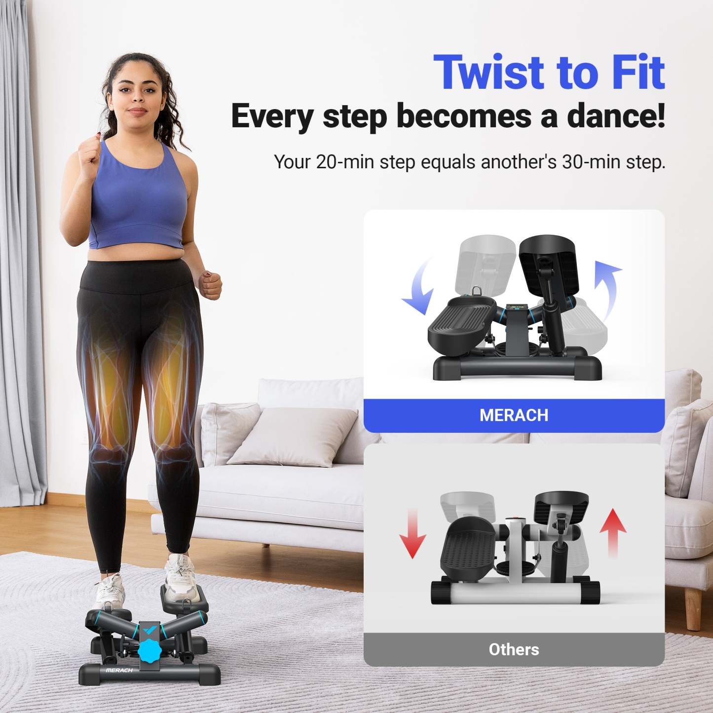 Our mini stepper features an innovative twist motion that engages multiple muscle groups for efficient full-body workouts. With every movement, you're not just exercising—you're dancing your way to fitness, making each minute count.