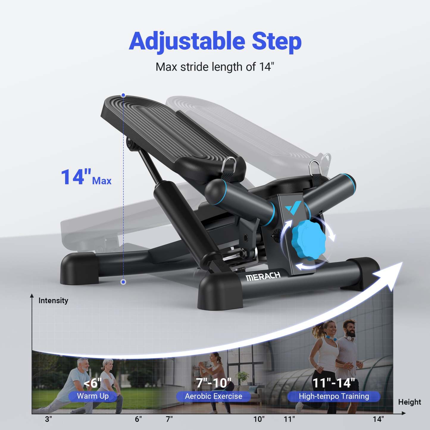 This mini stepper machine customizes the stride to suit different heights and preferences (recommended for users 4'9" to 6'2"). The adaptability ensures comfort and effectiveness for everyone.