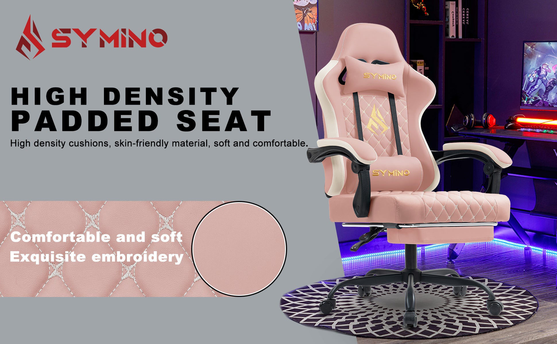 SYMINO Ergonomic PU Leather Racing Style Gaming Chair - Comfortable and Adjustable, Pink/Grey