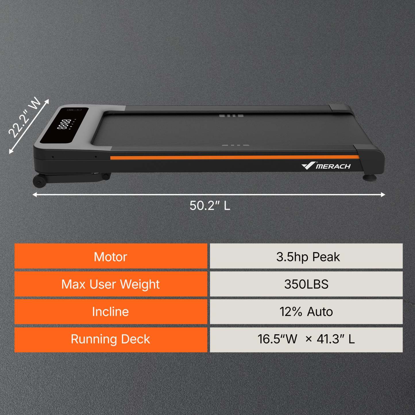 - A 16.5” x 41.3” running belt provides ample space and stability, helping you stay comfortable with every step.
