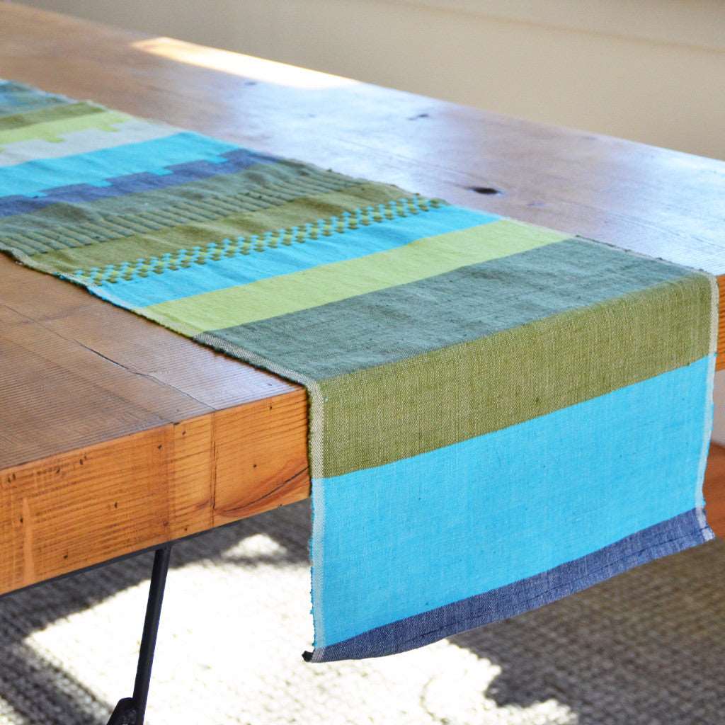 Make your runner the centerpiece of your dining table with our intricately woven Admas runner.? This handwoven beauty combines the designs of all the pieces in our Admas collection. ?The result is colorful and endlessly delightful.?? The nature-inspired hues and elaborate textures will be the talk of any dinner party.