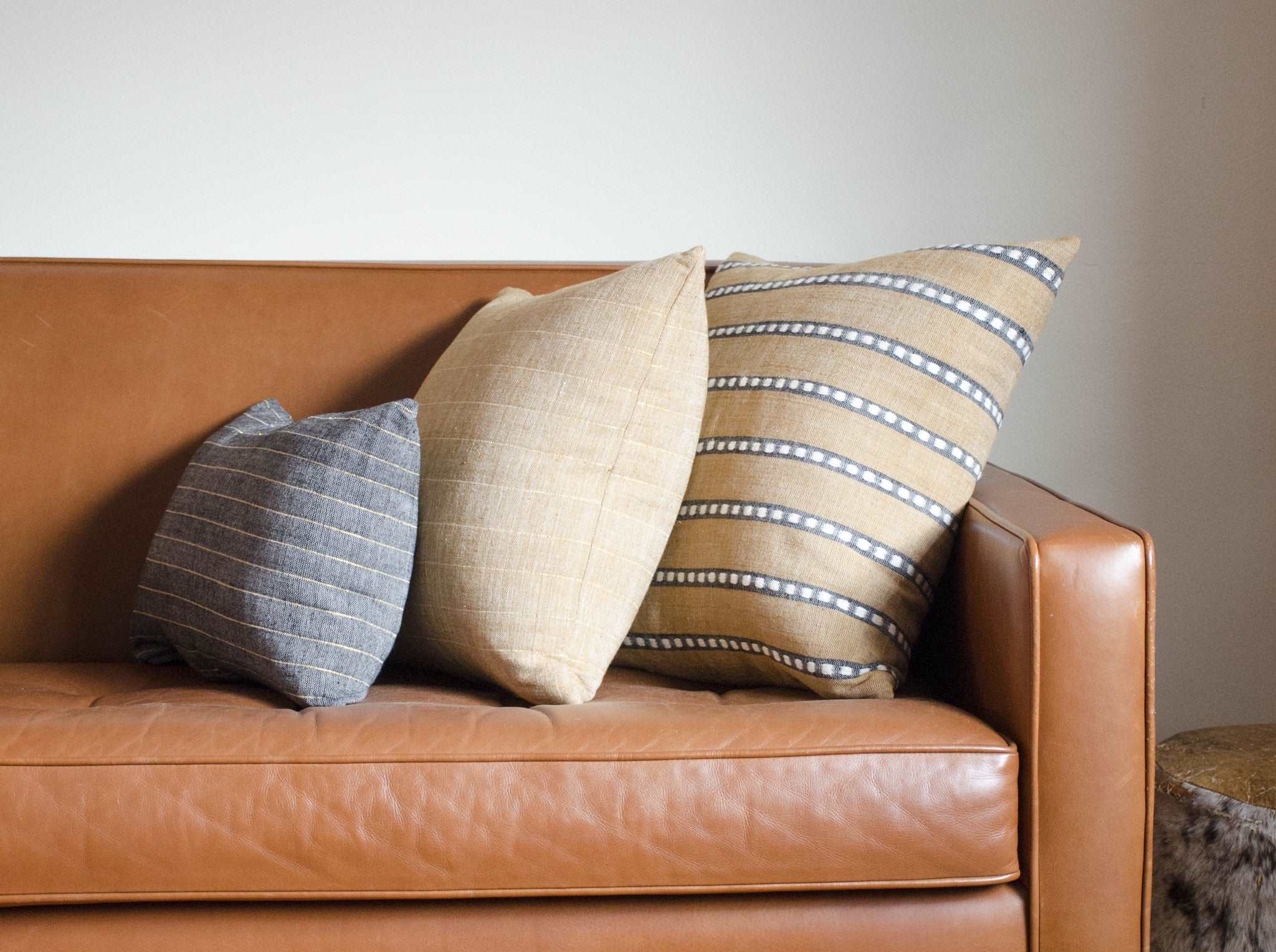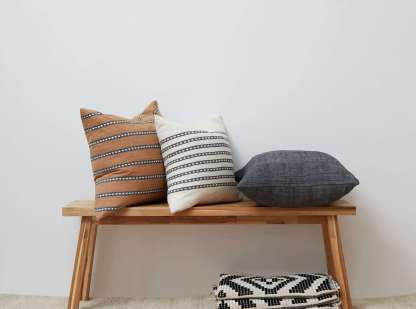 We had a bit of fun with the design of this pillow! The black and white dots were inspired by the patterns of the Wollo gabi, a textile from northeastern Ethiopia. The pillow is made with 100% handspun Ethiopian cotton which is incredibly soft and has amazing natural texture.