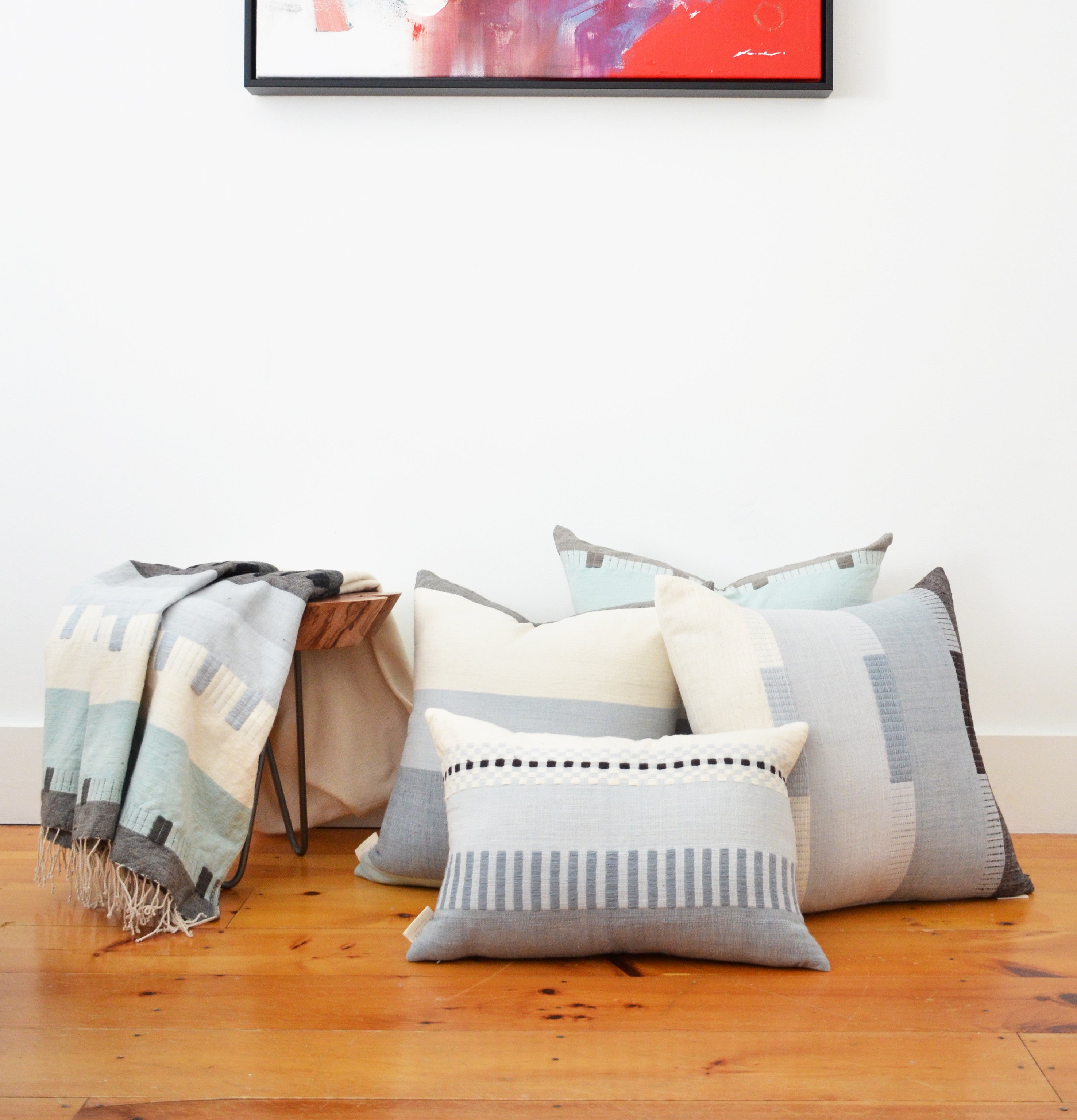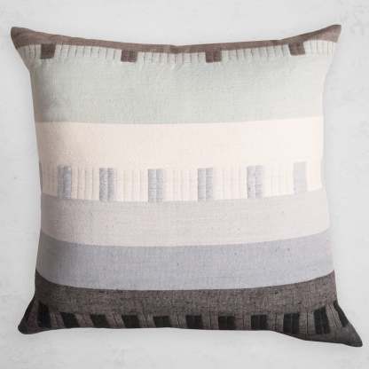 The Simien��s textured pattern recalls the undulating peaks and valleys of Ethiopia��s most majestic mountain range.? The textured piles are woven by master artisans using simple two-harness looms and picks, preserving the heritage of Ethiopian weaving, all in a fair trade environment.? Presented in colors that mimic the variation in hue found in the range��s atmospheric haze and jagged terrain, this bold pillow is sure to add a touch of the dramatic to any space in your home.