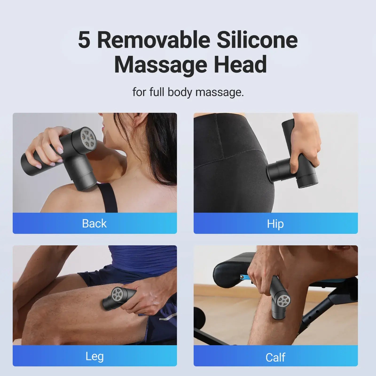 Brush Massage Head: Ideal for quads and glutes.