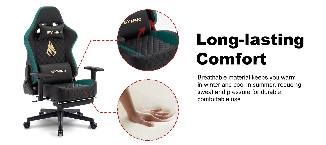 SYMINO Ergonomic Gaming Chair, PU Leather - Black, Retro-Style