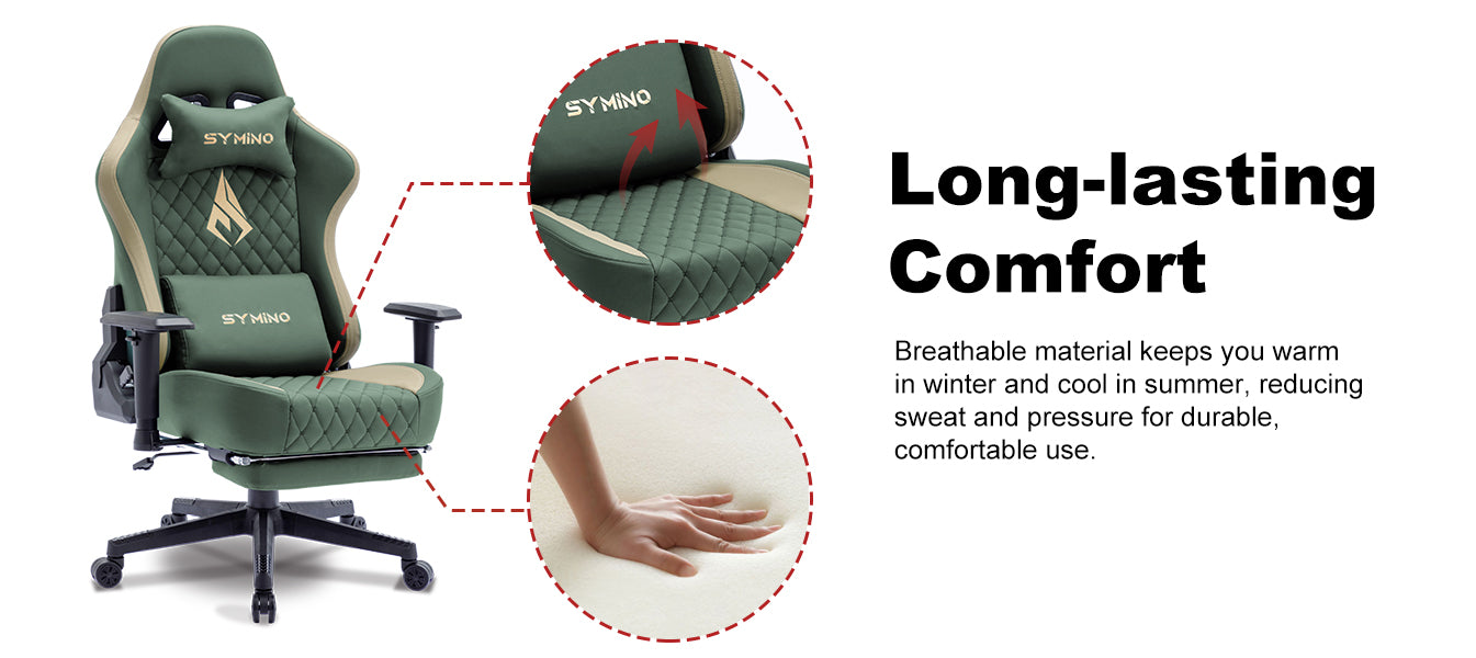SYMINO Ergonomic Gaming Chair, PU Leather - Green, Retro-Style