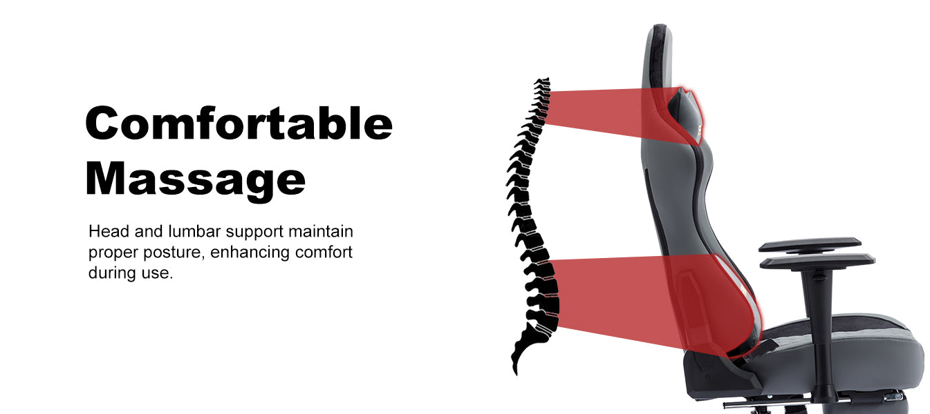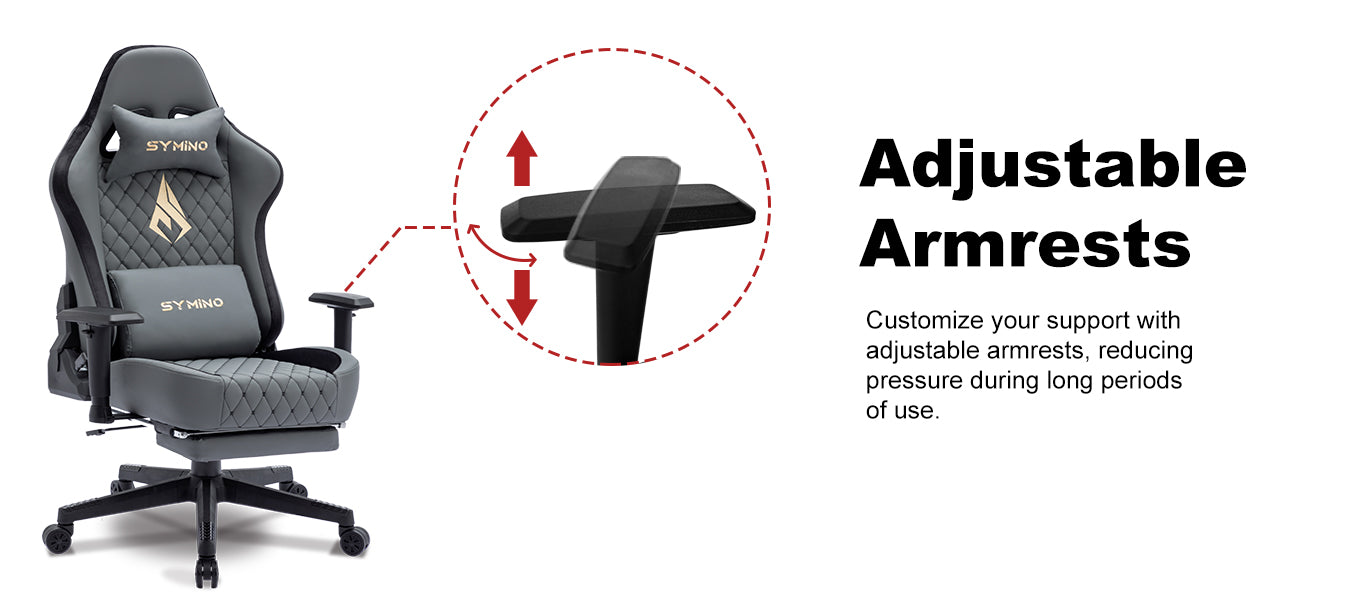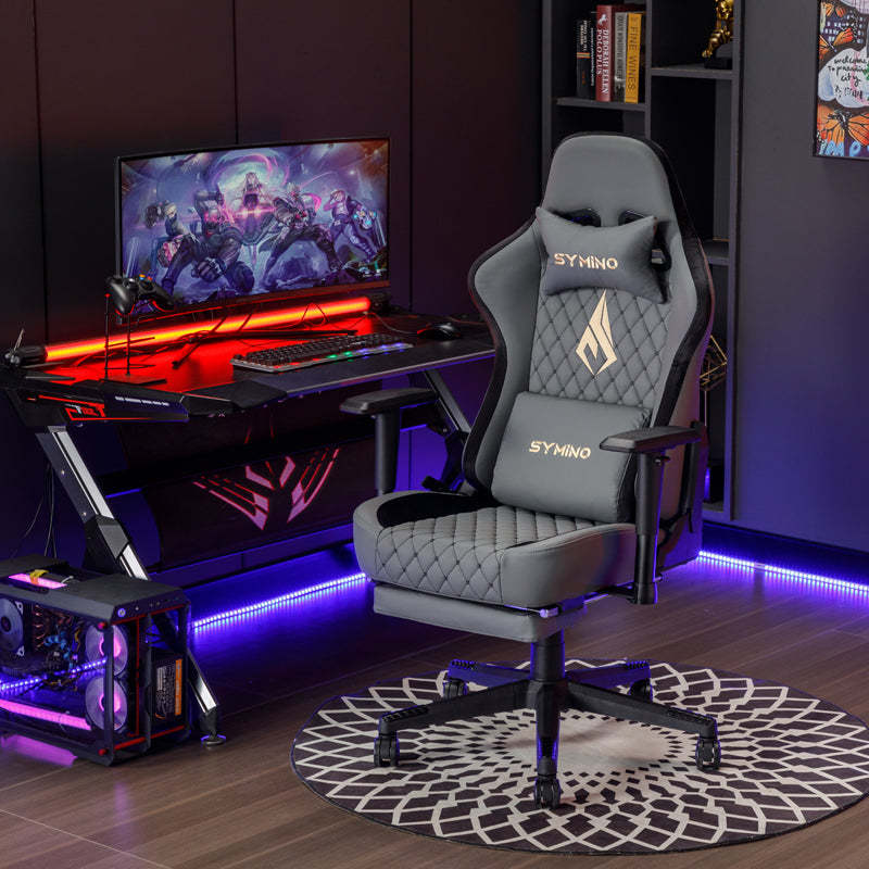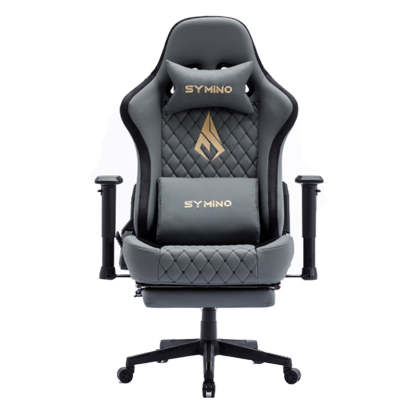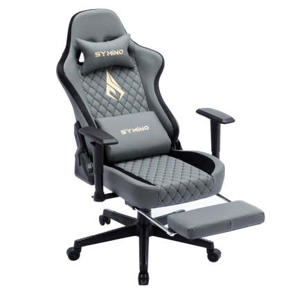 SYMINO Ergonomic Gaming Chair, PU Leather - Grey, Retro-Style