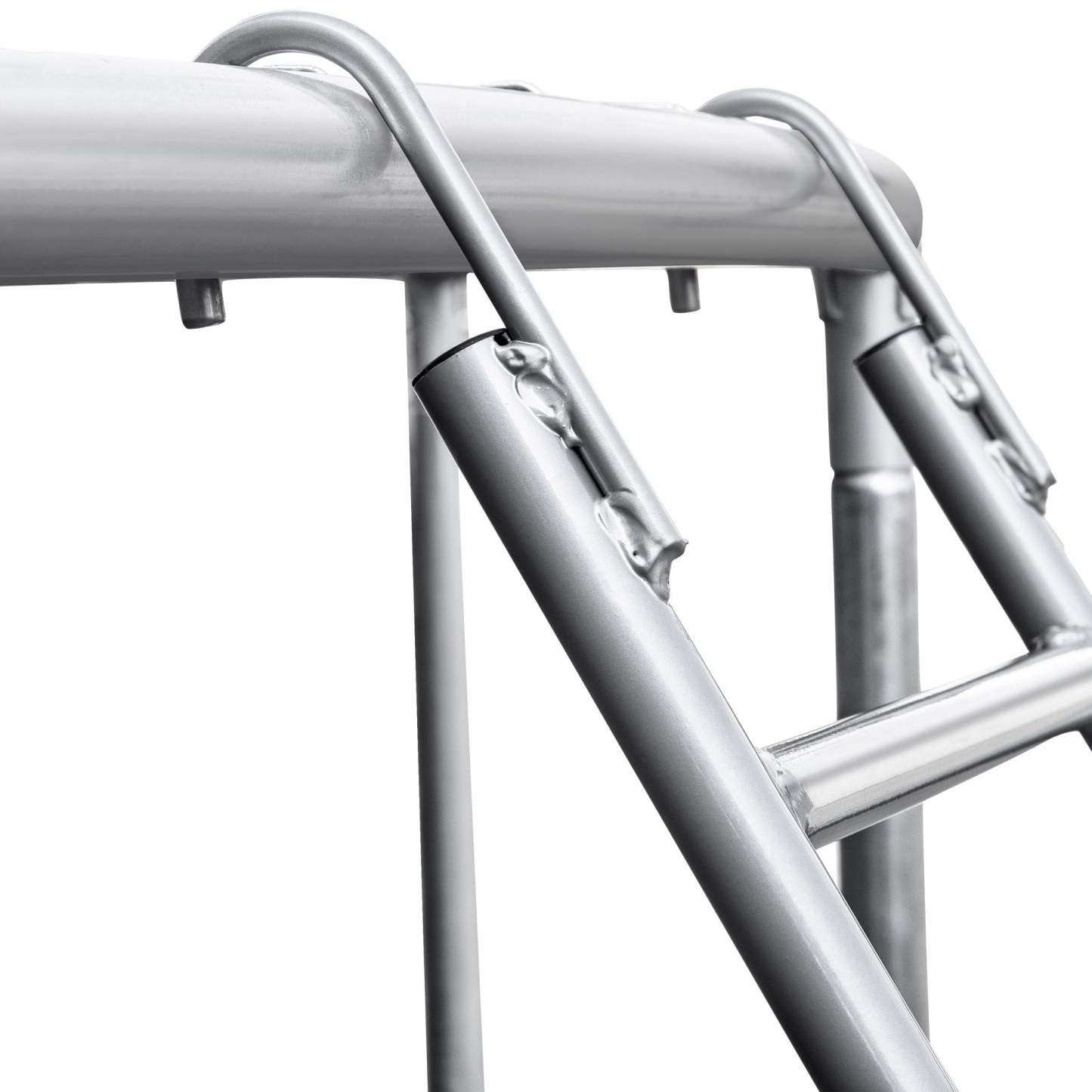 Double dipped galvanized inside and out to fight against rust and corrosion.The trampoline is made of the thickest and heaviest steel,which will not bend,warp,break or lose inertia on jumps.Max loading capacity is 375 lbs.