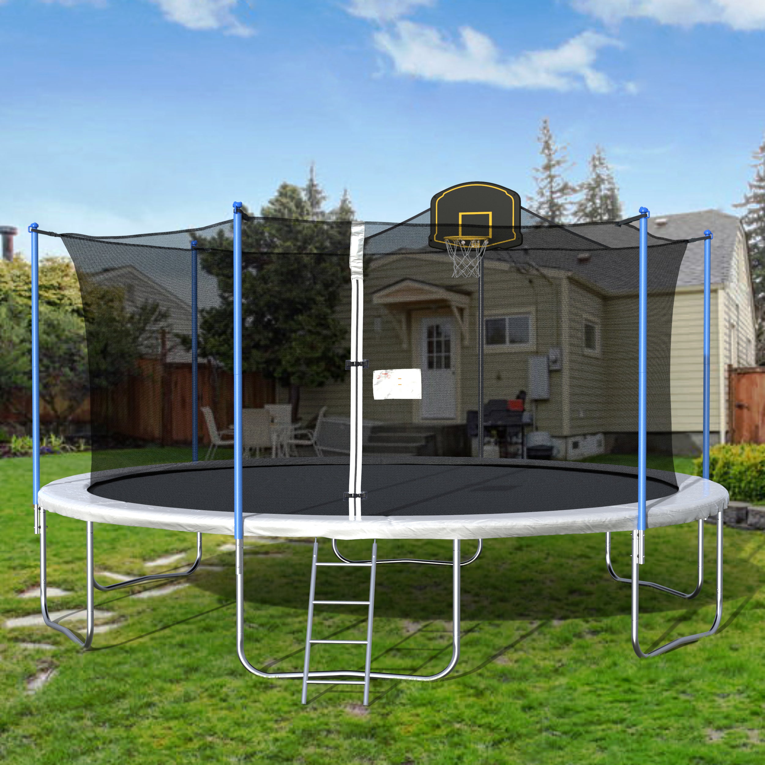 SEGMART 2021 New Upgraded Trampoline for Kids, 16ft Outdoor Trampoline with Safety Enclosure Net, Basketball Hoop and Ladder, Heavy-Duty Round Trampoline for Indoor or Outdoor Backyard.The Bounce Trampoline and enclosure combo with Basketball hoop and safety pad will keep your kids bouncing and happy for hours. It is aimed at bringing fun to children while protecting their safety during use. We always strive to provide the safest, most durable trampoline with excellent jumping experience for you!