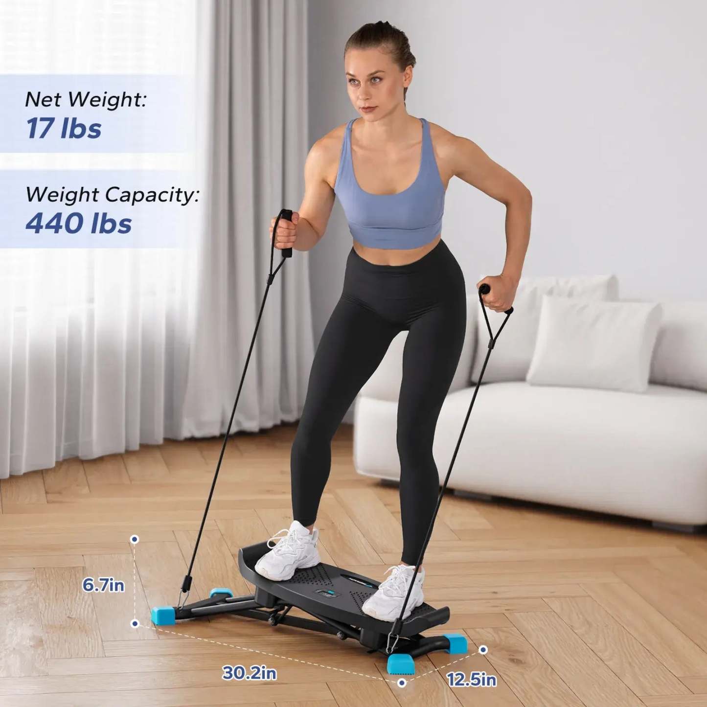 No assembly required: unbox and begin using immediately. This snow ski training machine supports up to 440 lbs, making it ideal for a wide range of users.