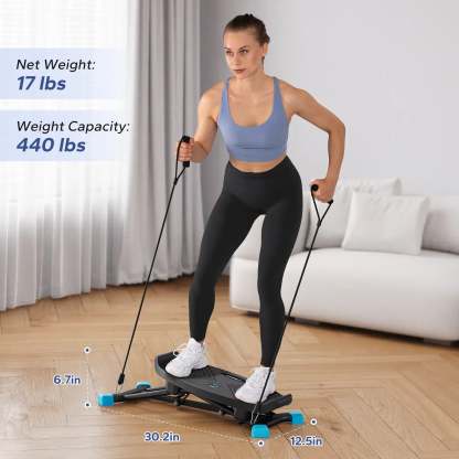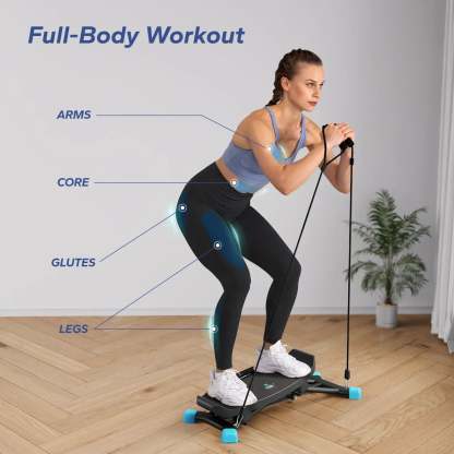 Stand on the platform and slide laterally for intense leg work; add resistance bands for a full-body challenge. Try a plank variation on the ski fitness machine to tone core, legs, and arms. Perfect for a complete ski machine workout.