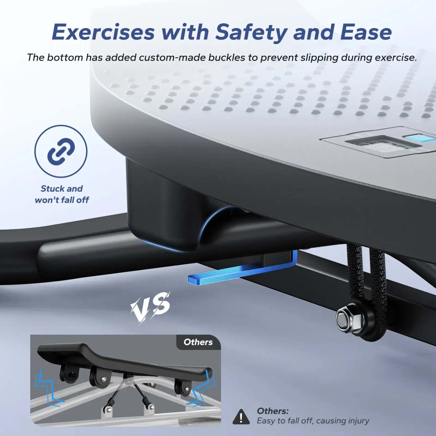 The Merach snow ski training machine is engineered for home ski fitness, featuring non-slip pedals, a balanced, sturdy base, and a custom locking mechanism—so your ski machine workout is safe and secure from start to finish.