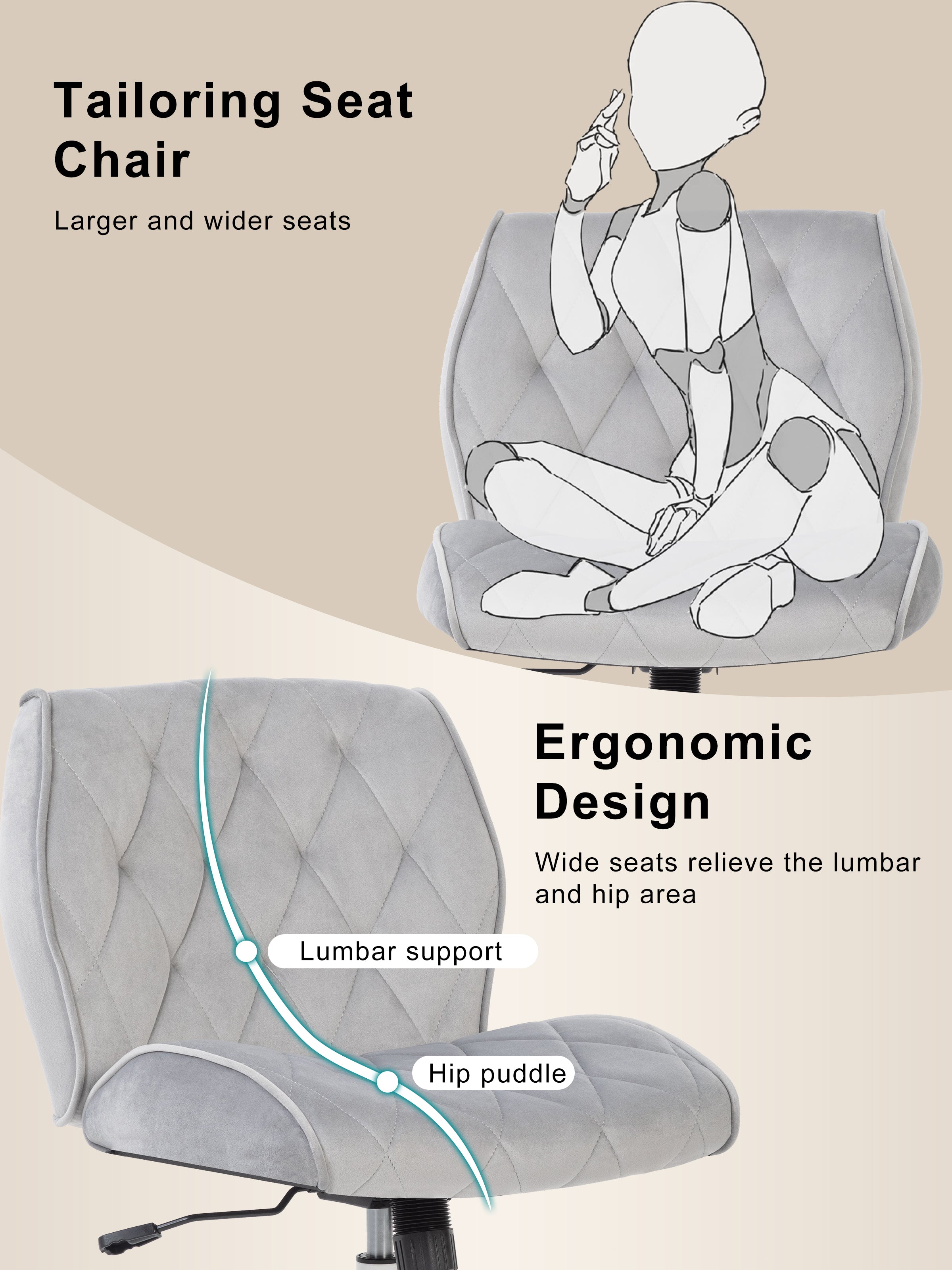 SYMINO Adjustable Makeup Vanity Chair – Suede-Feel Comfort, Ergonomic Design & Multiple Sizes for a Perfect Fit