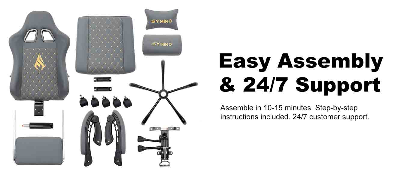 SYMINO AM-Ergonomic PU Leather Racing Style Gaming Chair - Comfortable and Adjustable, Grey