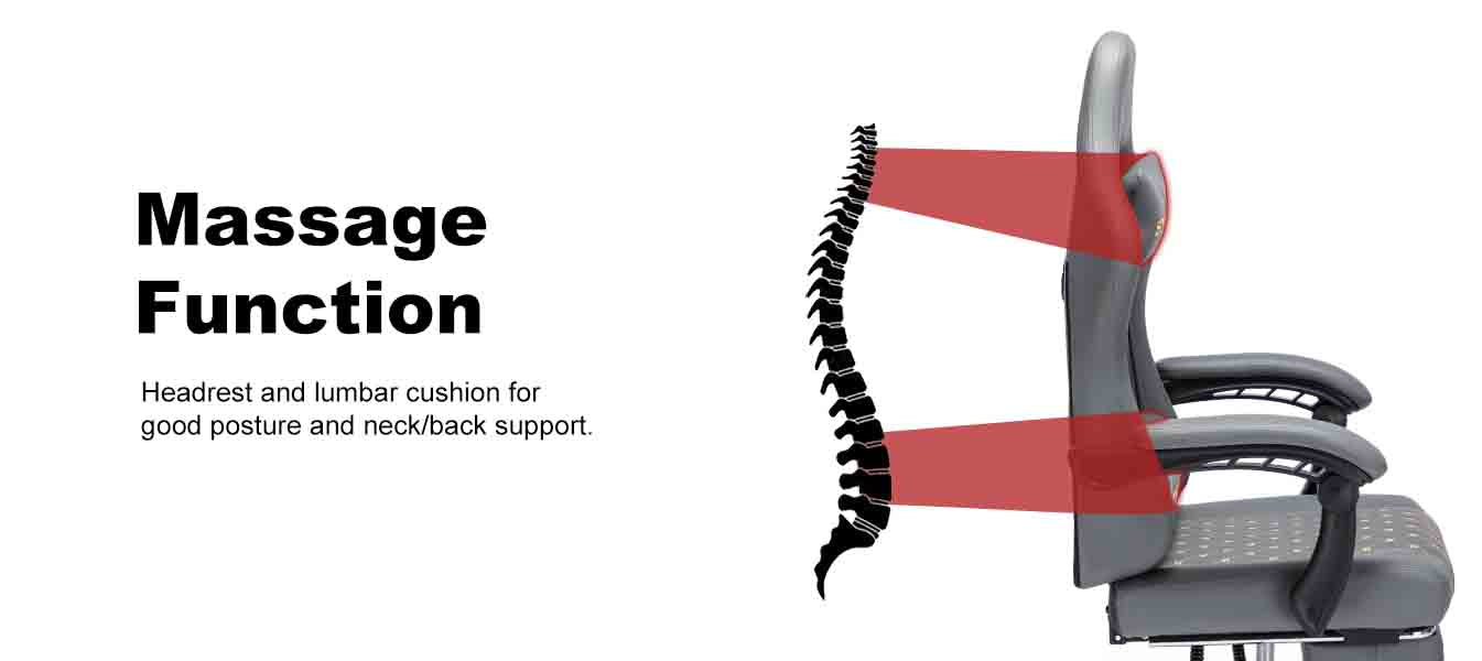 Ergonomic Grey Gaming Chair with faux leather and memory foam padding. Adjustable, rotating task chair with footrest, perfect for gaming and office use.