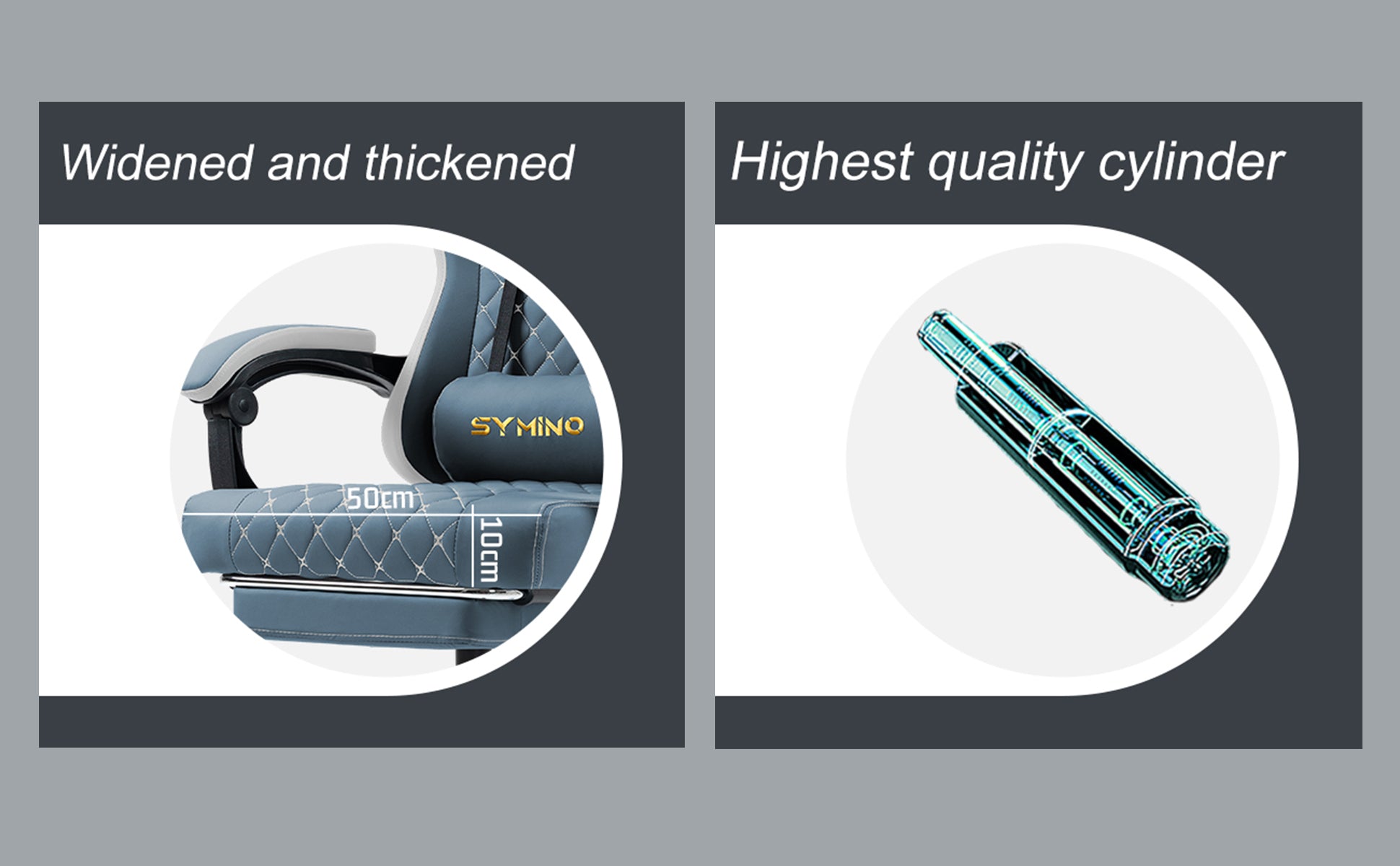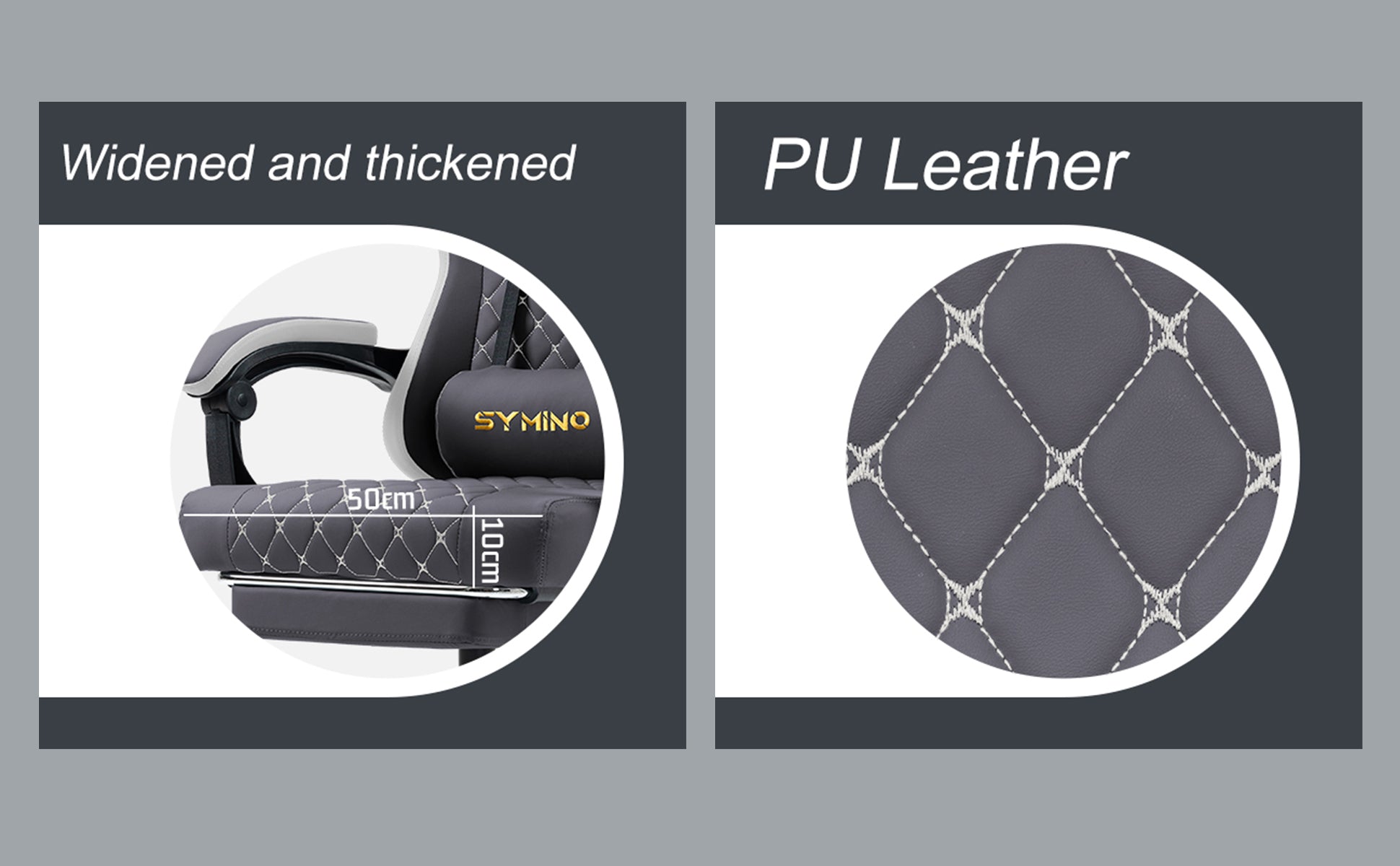 SYMINO Ergonomic PU Leather Racing Style Gaming Chair - Comfortable and Adjustable, Dark Grey