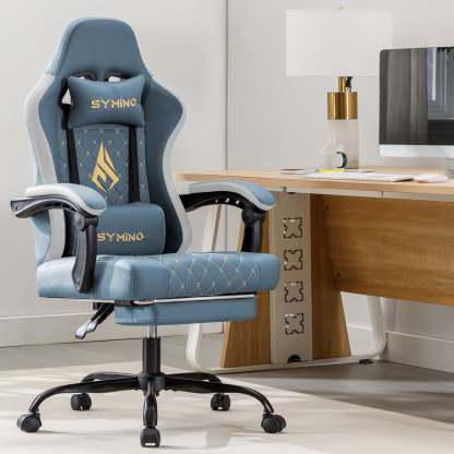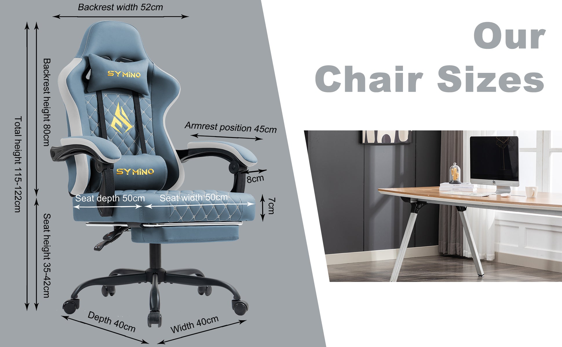 SYMINO Ergonomic PU Leather Racing Style Gaming Chair - Comfortable and Adjustable, DLight Blue
