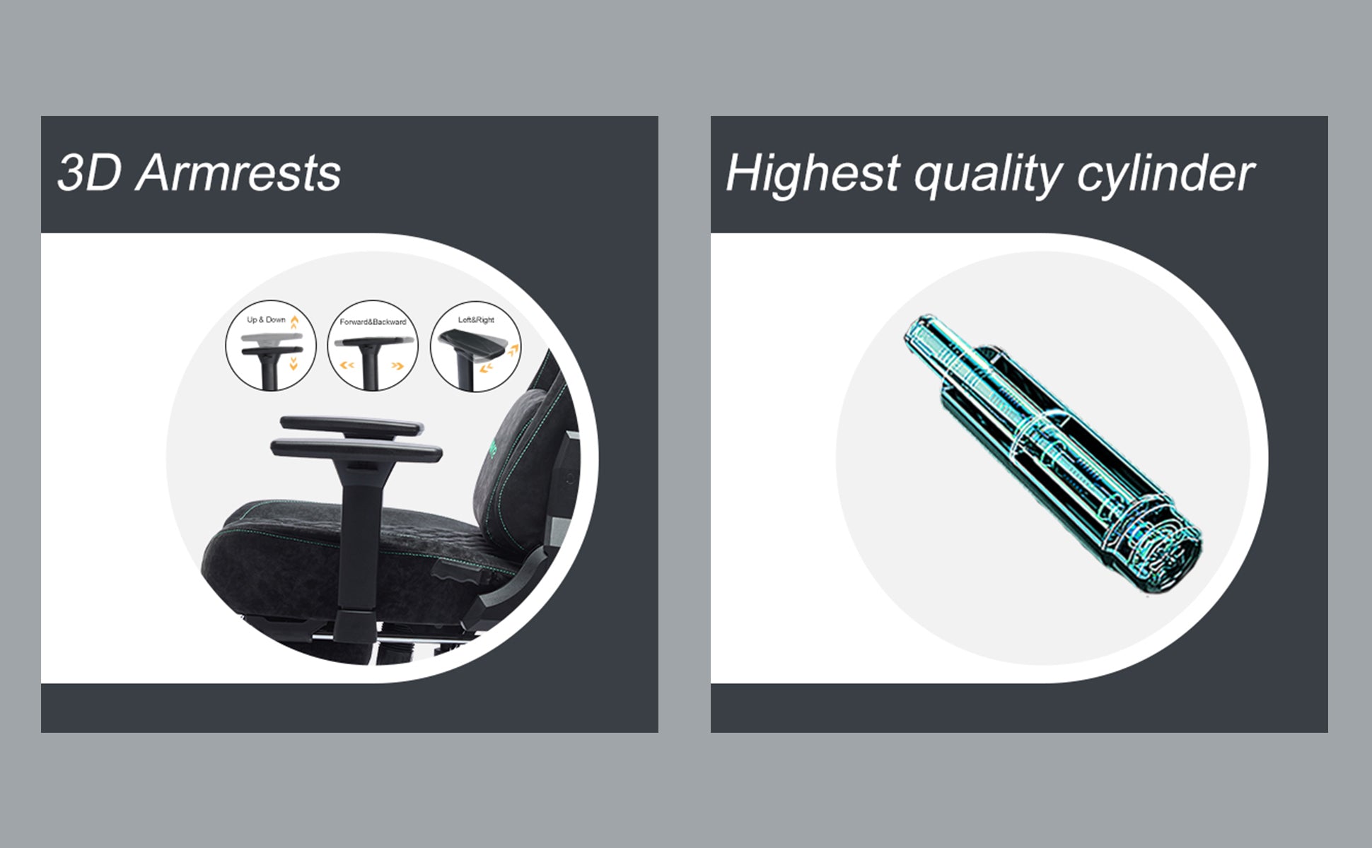 This gaming chair features highly breathable PU leather, offering 35 times more breathability than standard faux leather. It effectively reduces sweating in the back and lumbar areas, making it ideal for extended use. The soft leather, complemented by fine stitching, enhances overall comfort, making it the perfect choice for long hours of work or gaming.