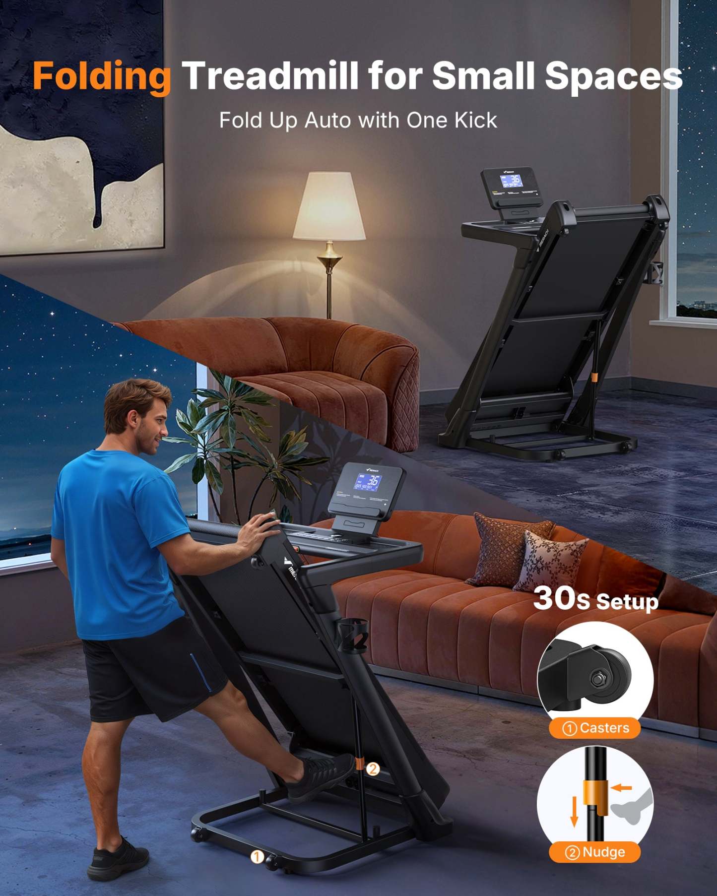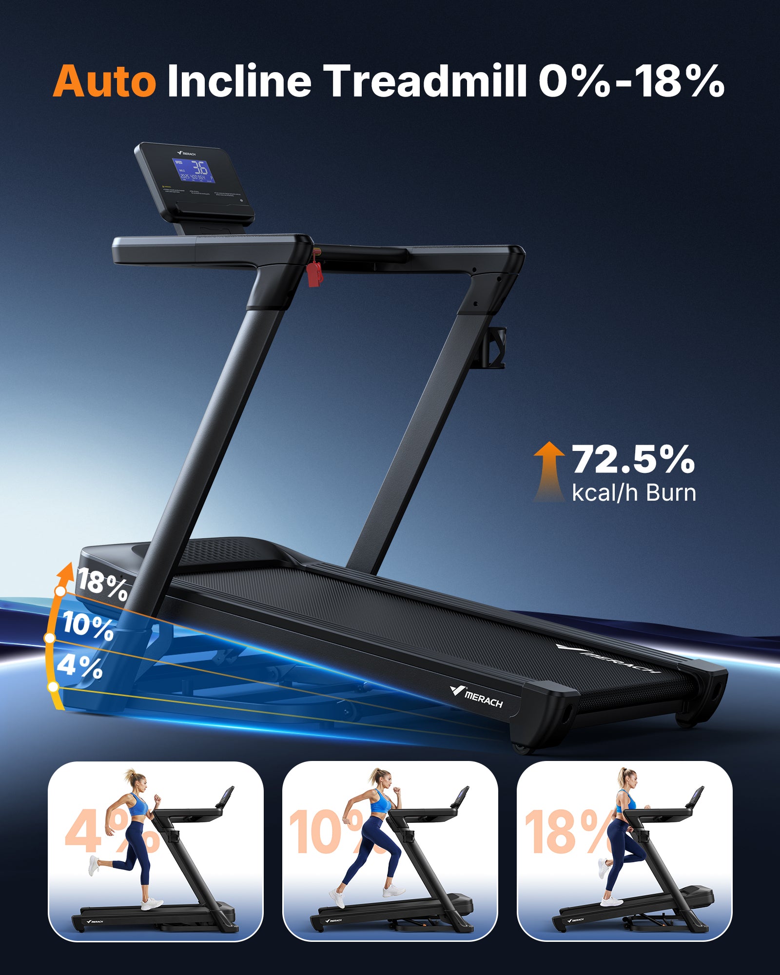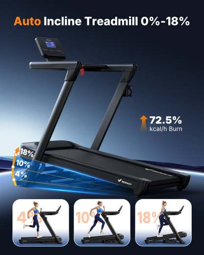 MERACH Treadmill with 18% Auto Incline, 0.6-8.7MPH Folding Treadmills for Home, 3.5HP Foldable Incline Treadmill for Running 350 LBS Weight Capacity with LED Display & Smart APP